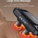 HEAD MASSAGE GUN DEEP TISSUE, MUSCLE MASSAGER 20 INTENSITIES & 6 MASSAGE MODES, 4-HEAD BACK MASSAGER FOR PAIN RELIEF IN BACK, LEG, NECK, SHOULDER AND BODY