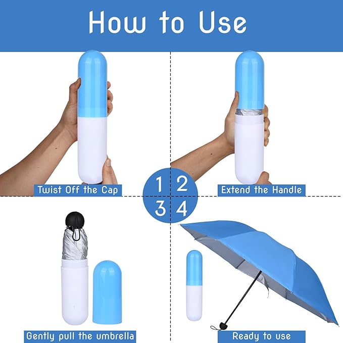 - COMPACT AND LIGHTWEIGHT DESIGN: Designed for portability, this umbrella folds down into a compact capsule case, making it easy to carry in your bag or pocket.
