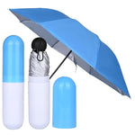 MINI UMBRELLA WITH CAPSULE CASE FOLDABLE UV PROOF WINDPROOF COMPACT POCKET LIGHTWEIGHT TRAVEL UMBRELLAS FOR WOMEN MEN KIDS (PACK OF 1, RANDOM COLOR)