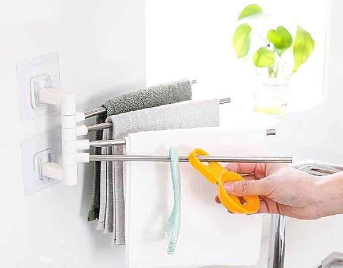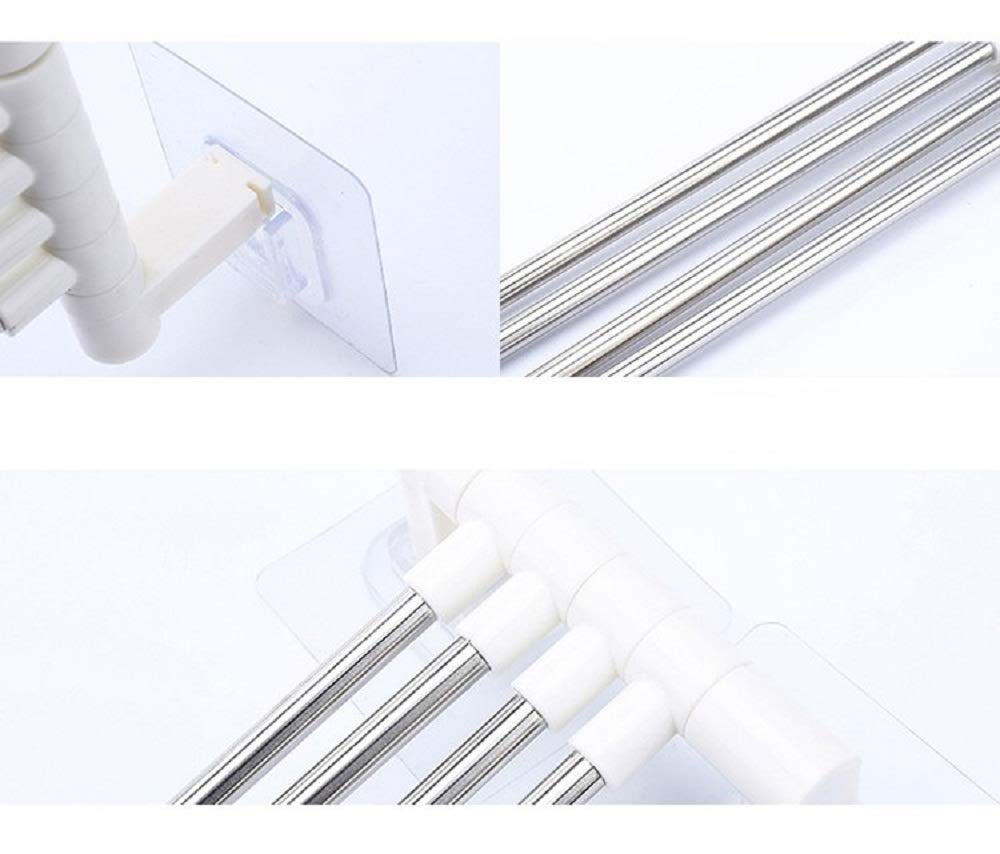 PLATINUM 4 BAR STAINLESS STEEL FOLDING TOWEL HANGING HOLDER SHELF RACK ORGANIZER PORTABLE STAND LONG WITH CHROME FINISH FOR BATHROOM KITCHEN WITH HANGER