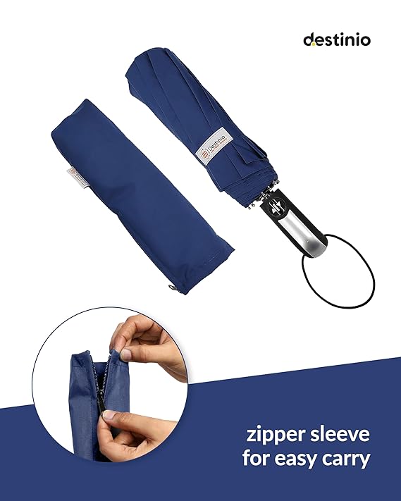 DESTINIO UMBRELLA FOR MEN - AUTOMATIC LARGE SIZE FOLDABLE UMBRELLA WITH TRAVEL COVER FOR MAN AND WOMEN - 3 FOLD WINDPROOF UMBRELLA
