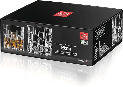 Product Details : Color: Clear, Capacity:330 ml,Height : 95 mm, Diameter:80 mm Package content- 6 Crystal Glasses.Please check box packaging as shown in images for Original made in Italy Rcr Cristelleria Italiana product.
