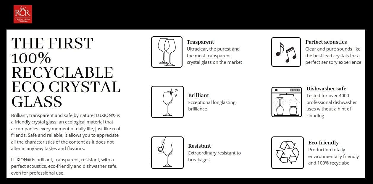 LUXION Ultraclear Crystal Glass: The first true Eco Crystal, renowned for its unparalleled purity and transparency, making it the clearest and most luxurious crystal glass on the market.