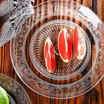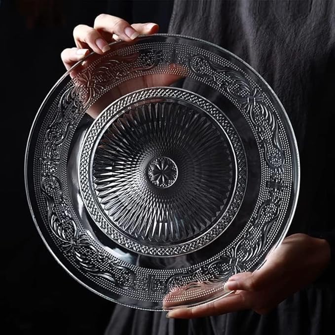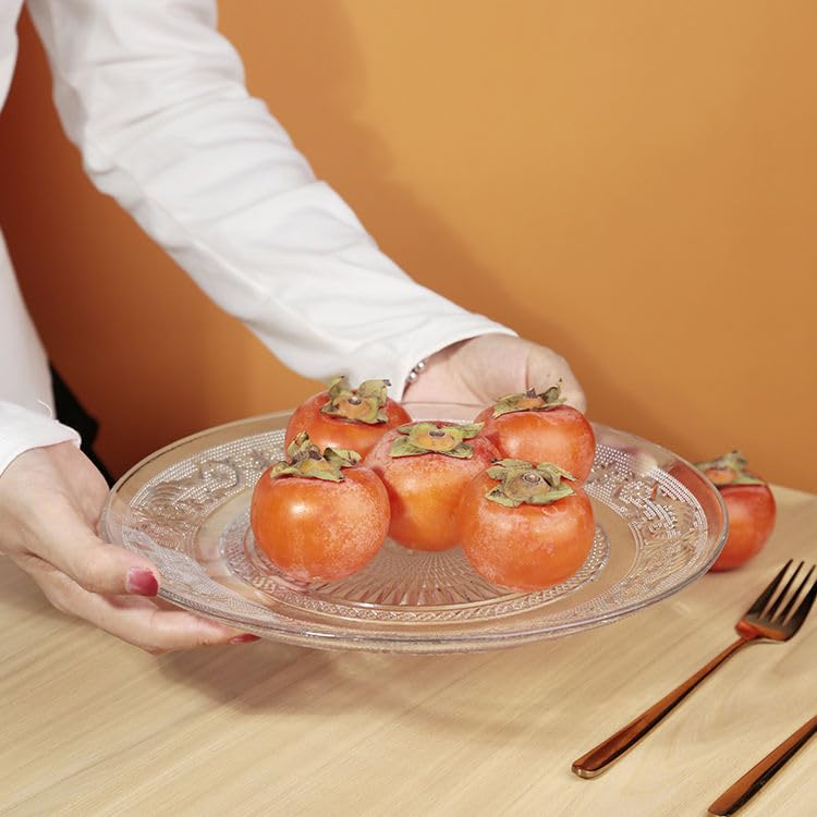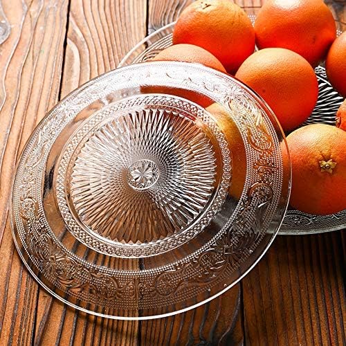 GLASS PLATE SET OF 2 PCS FLOWER DECORATIVE 8 INCH CRYSTAL CLEAR GLASS PLATE- DRY FRUITS SWEETS CHOCOLATE SNACK PLATE FOR DINING,CATERING EVENT, DINNER PARTIES,WEDDING DINNER PLATE