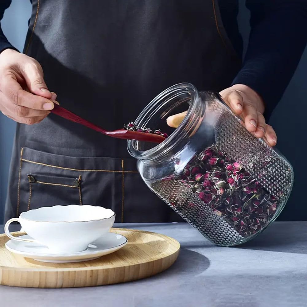 • AIRTIGHT LID: The jar comes with a secure lid that creates an airtight seal, helping to preserve the freshness and flavour of your stored items.