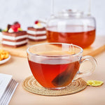 ITALIAN PREMIUM GLASS TEA CUP SET | COFFEE MUGS WITH HANDLE TRANSPARENT DRINKING CUP FOR MILK, CAPPUCCINO, HOT CHOCOLATE & COLD BEVERAGES | 210ML | SET OF 6 (ROUND TEA CUP 6)