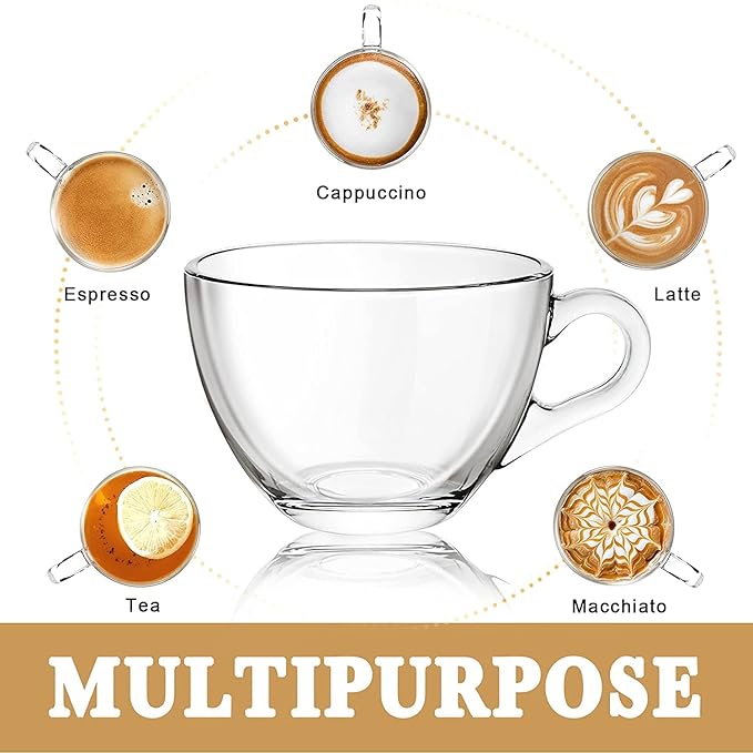 • ELEGANT C-HANDLE DESIGN: If you enjoy the joy of holding with one hand, this mug will bring you pure enjoyment. Meanwhile, if you need to share coffee or afternoon tea with friends and colleagues, it is perfect for party occasions, the Glass Cup with its comfy handle, satisfying rim, shatter-proof and lead-free glass