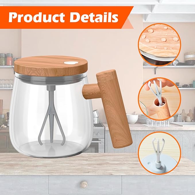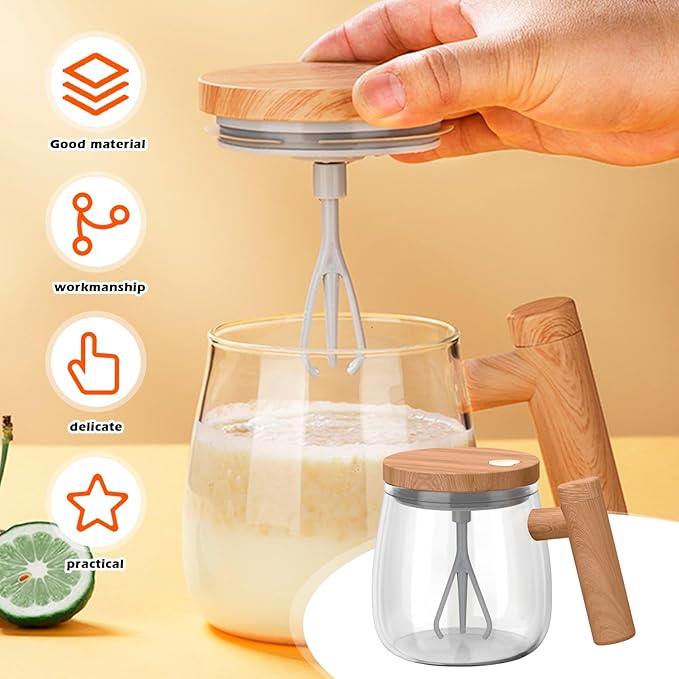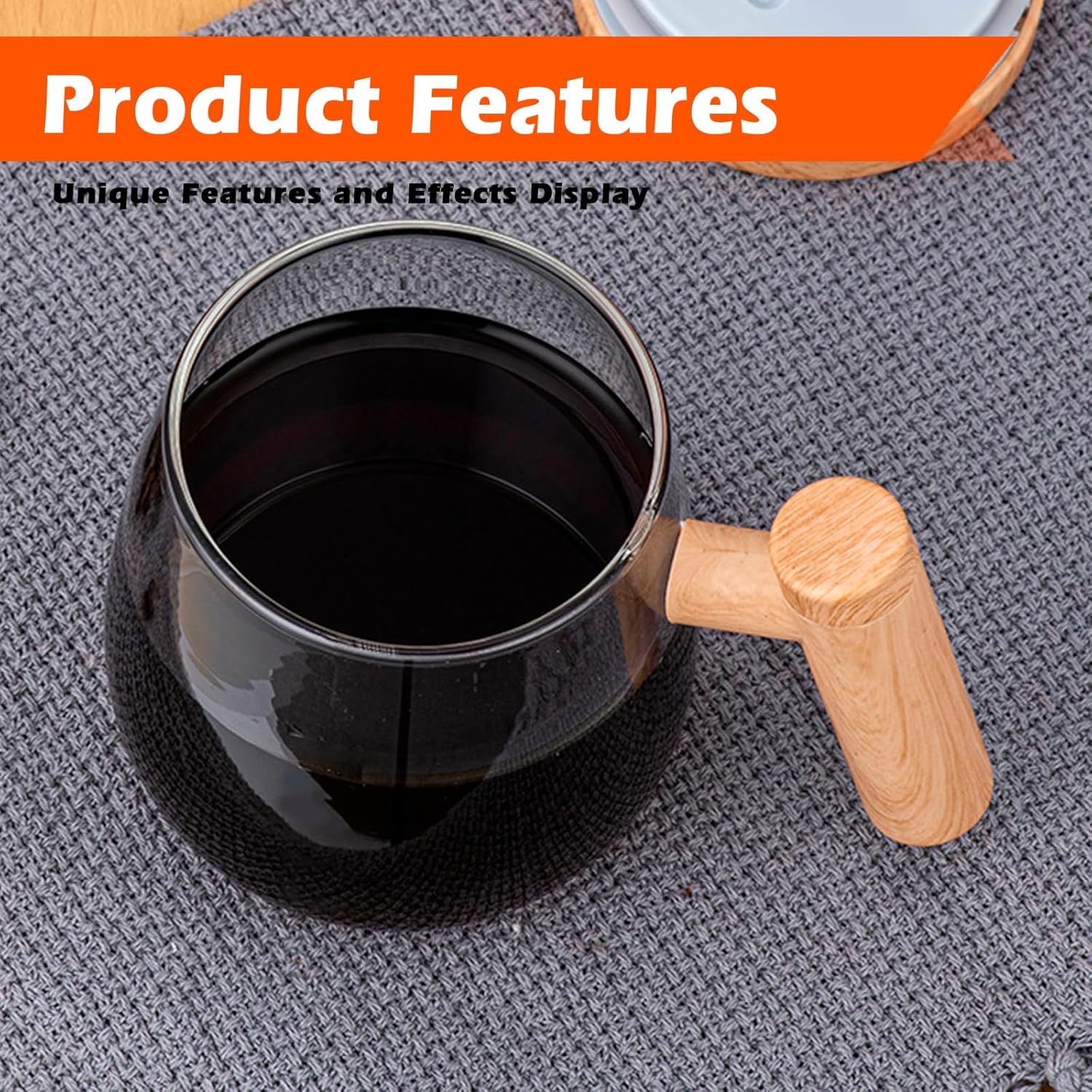 HIGH QUALITY MATERIAL: This electric self-stirring cup is made of glass with high borosilicate content. Whether inside or outside the coffee cup, the material is resistant to eating acid, alkali and high temperatures and does not produce odours or harmful substances for the drink.