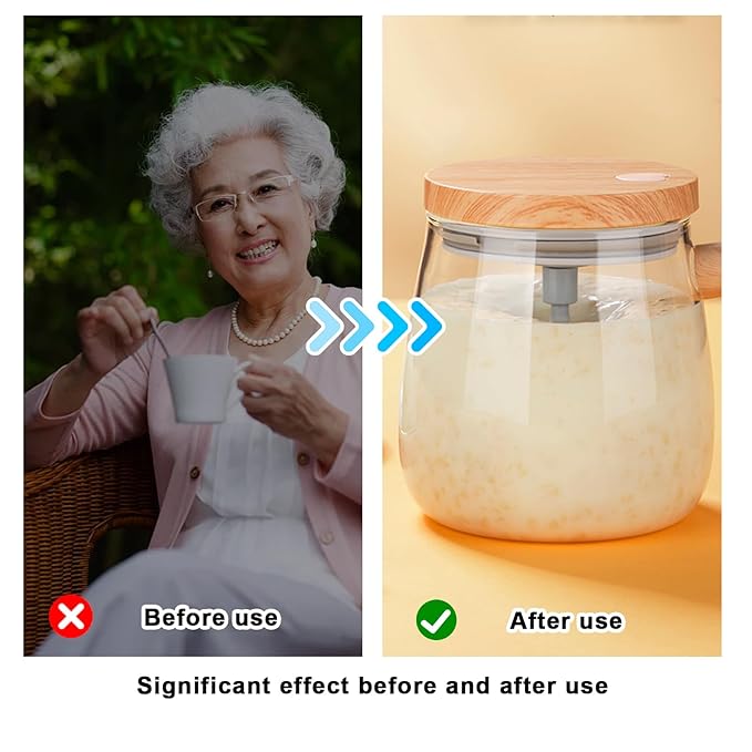 Automatic Stirring Mug: This mixing cup has a low speed mixer to mix beverages quickly and thoroughly. You can even prepare coffee, protein drinks, juices or shakes without worrying about solid particles or liquid separation.