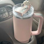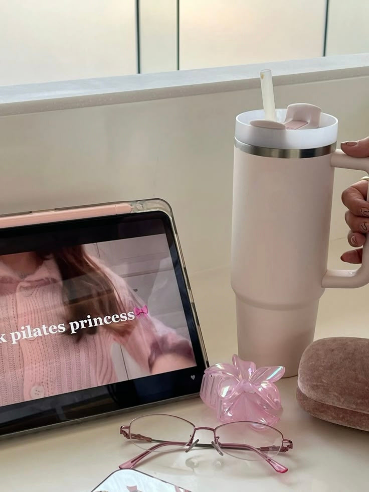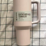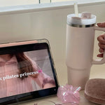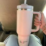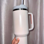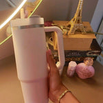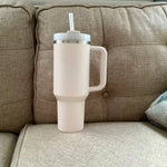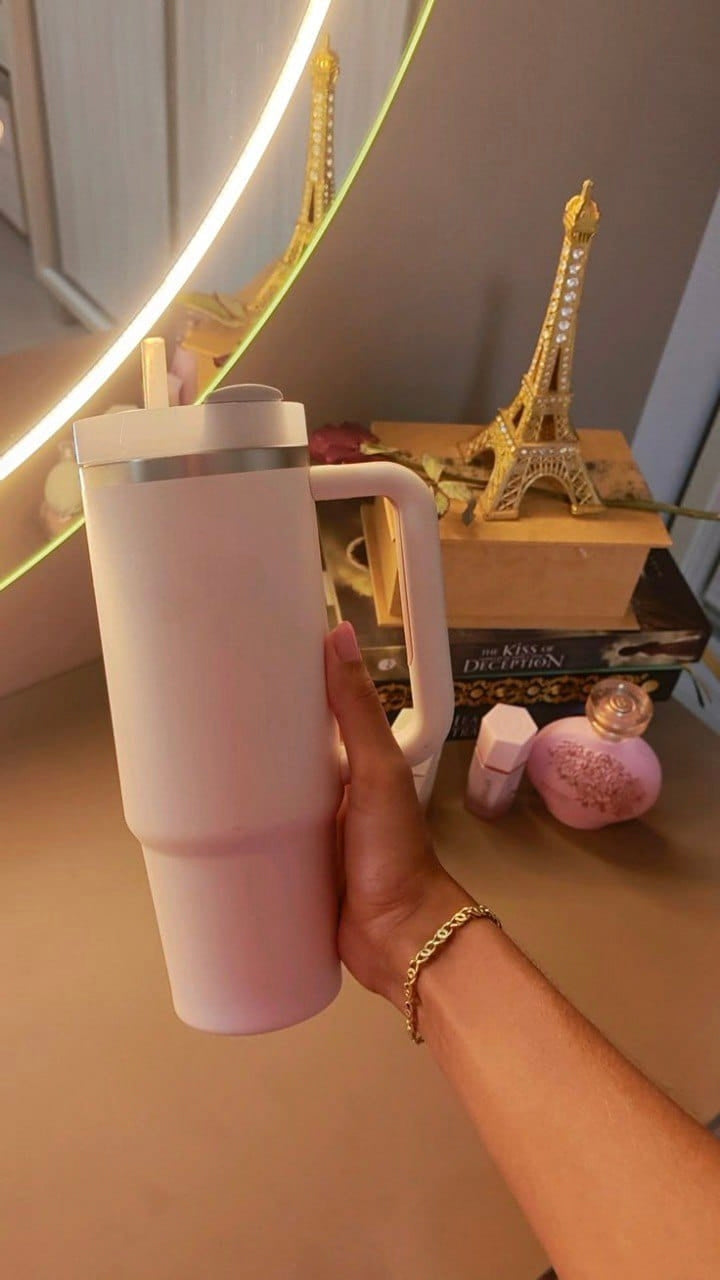 TUMBLER WITH HANDLE AND STRAW LID 40OZ DOUBLE WALL STAINLESS STEEL WATER BOTTLE CUP REUSABLE TRAVEL GYM YOGA MUG BPA FREE DURABLE FOR ICED TEA COFFEE (ROSE CREAM), 1200 ML